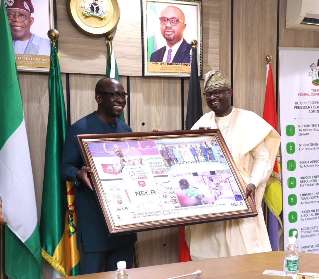 The Honourable Minister of Interior, Dr. Olubunmi Tunji-Ojo, stated this when he received the Director-General of the Nigeria Employers’ Consultative Association (NECA), Mr. Adewale-Smatt Oyerinde, on a courtesy visit to his office.